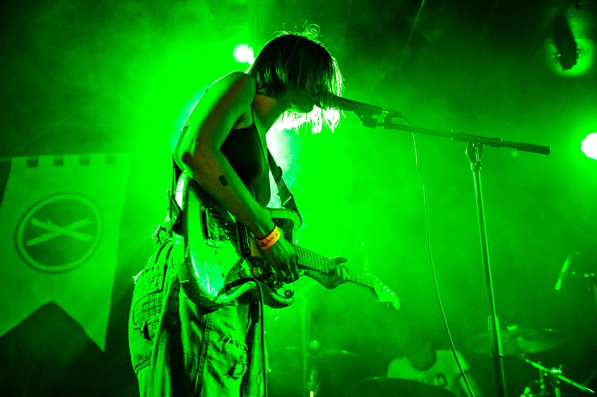 That first encounter made Drook one of my most anticipated sets at SXSW, where their show at Hotel Vegas only deepened the obsession. Touring behind 2024’s The Pure Joy of Jumping, the band has built a reputation for turning songs that already feel expansive on record into something even more volatile and tactile in a live setting. By the time I caught them again at Treefort Music Fest — this time at Neurolux, under a nervy, erratic light design run by the same lighting designer working with Flipturn at the festival — the performance had taken on another dimension entirely. Strobe-like bursts and fractured colour heightened the urgency in the music, while also illuminating a euphoric feeling like being in a rave. Just as striking was the way the band seemed to perform toward one another while the crowd interacts around them — Matthew Shultz (guitar, bass, keys) often partially turned away, Liza Grishaeva (vocals/guitar) angled side-stage, and Tyler Smith (drums, percussion, keys) taking it all in, while holding the rhythm together.
