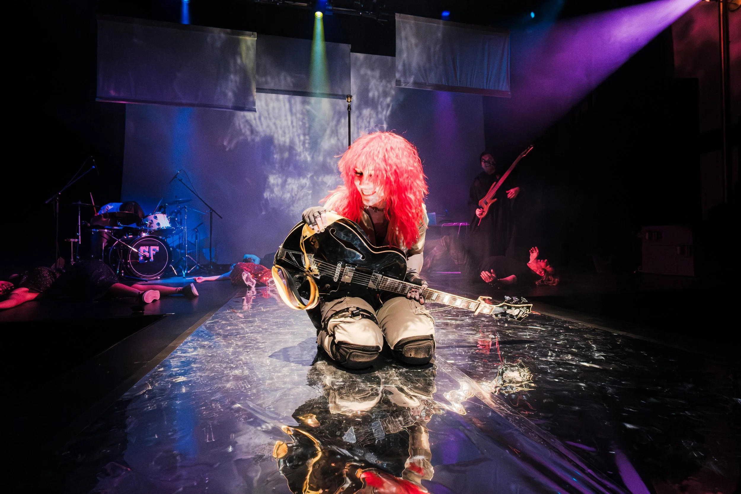 Throughout the night, SHY FRiEND acted as both a musical anchor and emotional accelerant. Created by classical composer and self-described “online goblin” Jubs, SHY FRiEND’s music threaded through the evening — sometimes foregrounded, sometimes bleeding into movement and theatrical scenes. Their sound, equal parts alt-pop melodrama and queer irreverence, gave the night a flow that was interpretive, fluid, and emotion.