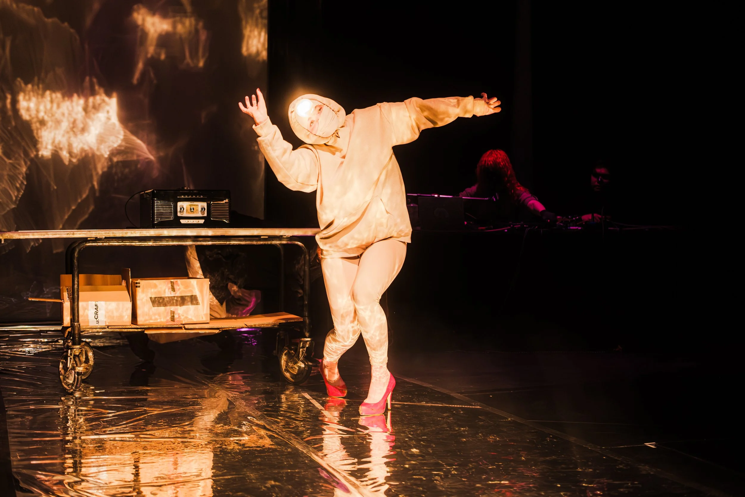 Oszust’s choreography moved through darker terrain. A Calgary-based dance artist with a background spanning stage, film, and international residencies, her work focused on the body as something both mechanical and vulnerable. Her movements oscillated between rigidity and release, suggesting power structures imposed onto flesh that is social, institutional, and internalized. Rather than offering clarity, her performance lingered more in feeling and individual interpretation.