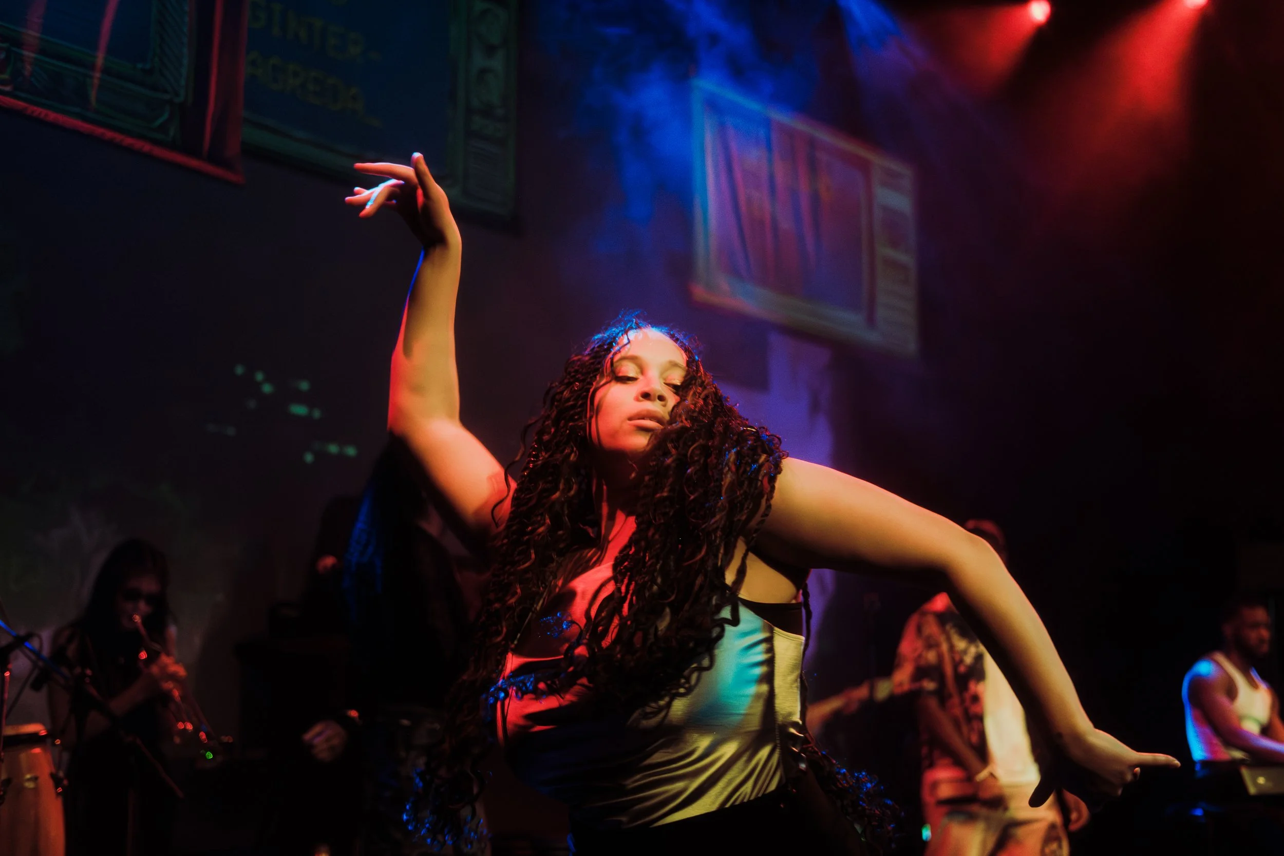 If Mooney grounded the evening in language, (un)decided propelled it skyward. Vocalist Jon Itamah’s performance of “Home Is Where the Heart Is” was another highlight, his voice rich and searching as he navigated questions of time, place, and belonging, ending the number honouring his endurance — “maybe the struggle is what gave me the crown.” The band’s elasticity shone brightest in the free jazz passages as well — trumpet lines spiralling, percussion loosening its grip on structure — while Gisele answered with tap rhythms that ricocheted across the stage. Her movement carries a quiet fire: shoulders trembling, wrists carving air, feet punctuating silence. She embodied both fragility and force.